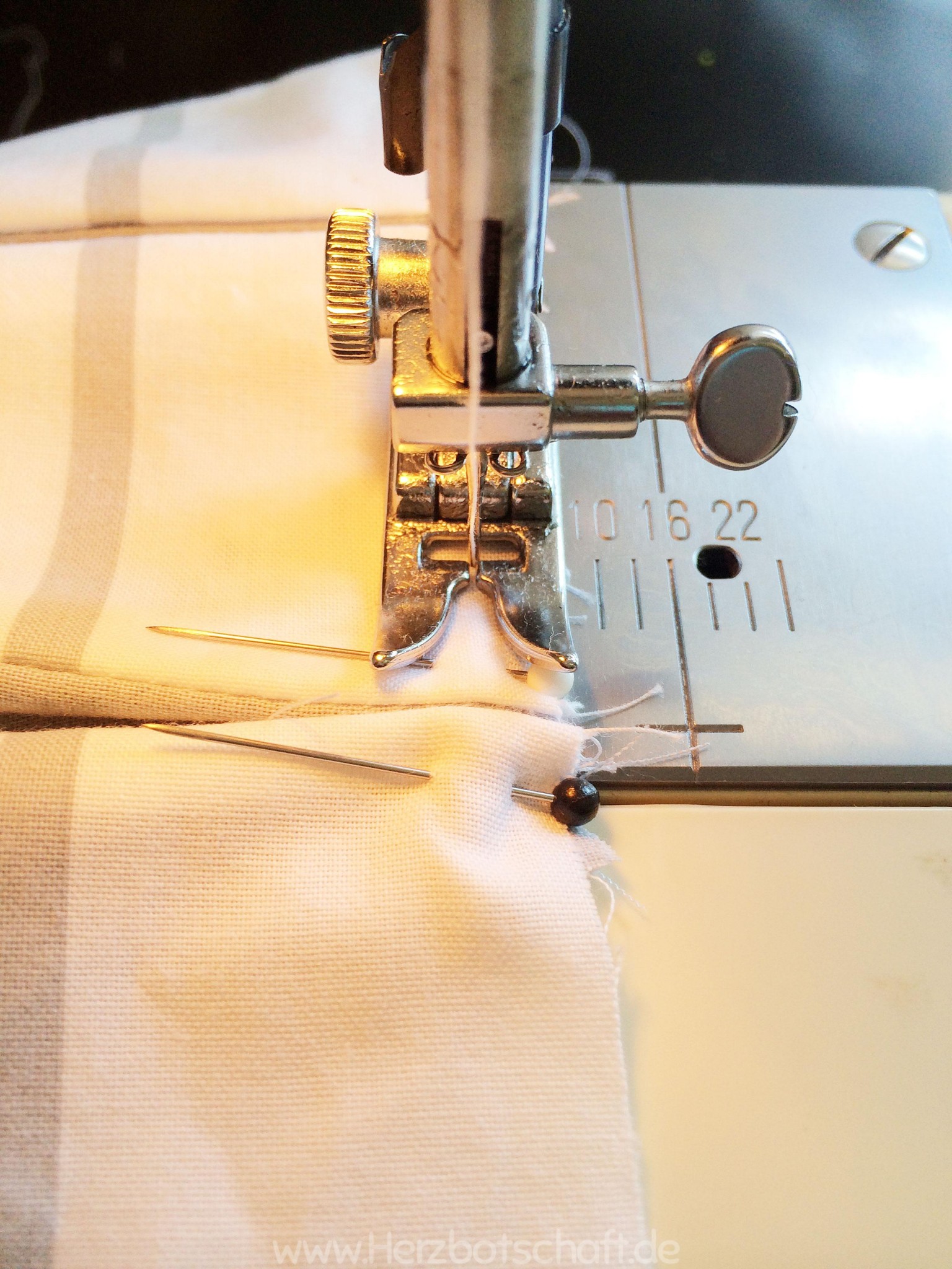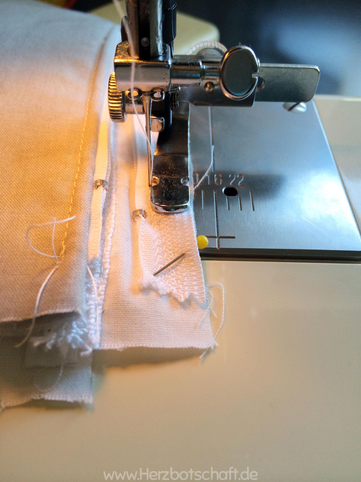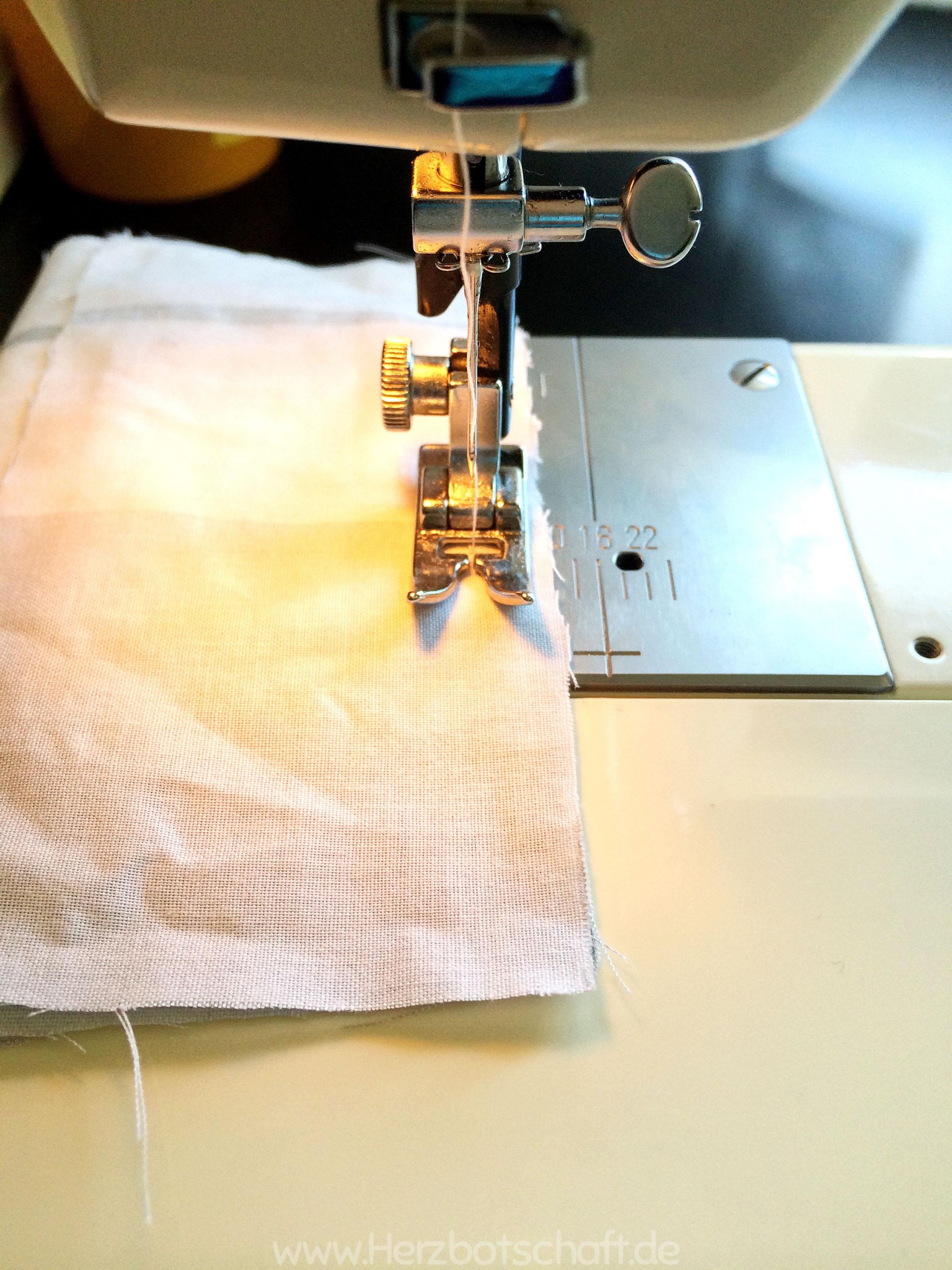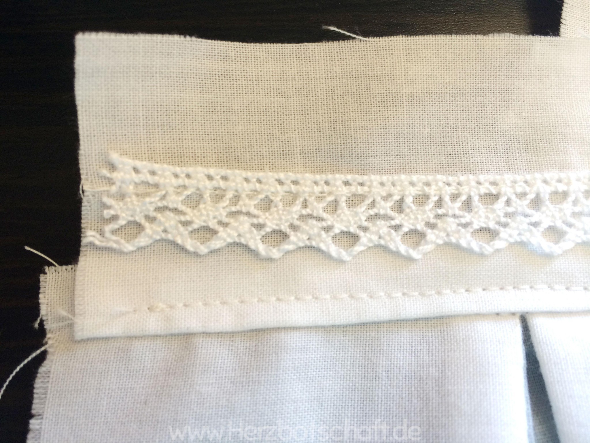 - Die Falten festnähen, indem Füßchenbreit eine gerade Naht gesteppt wird.