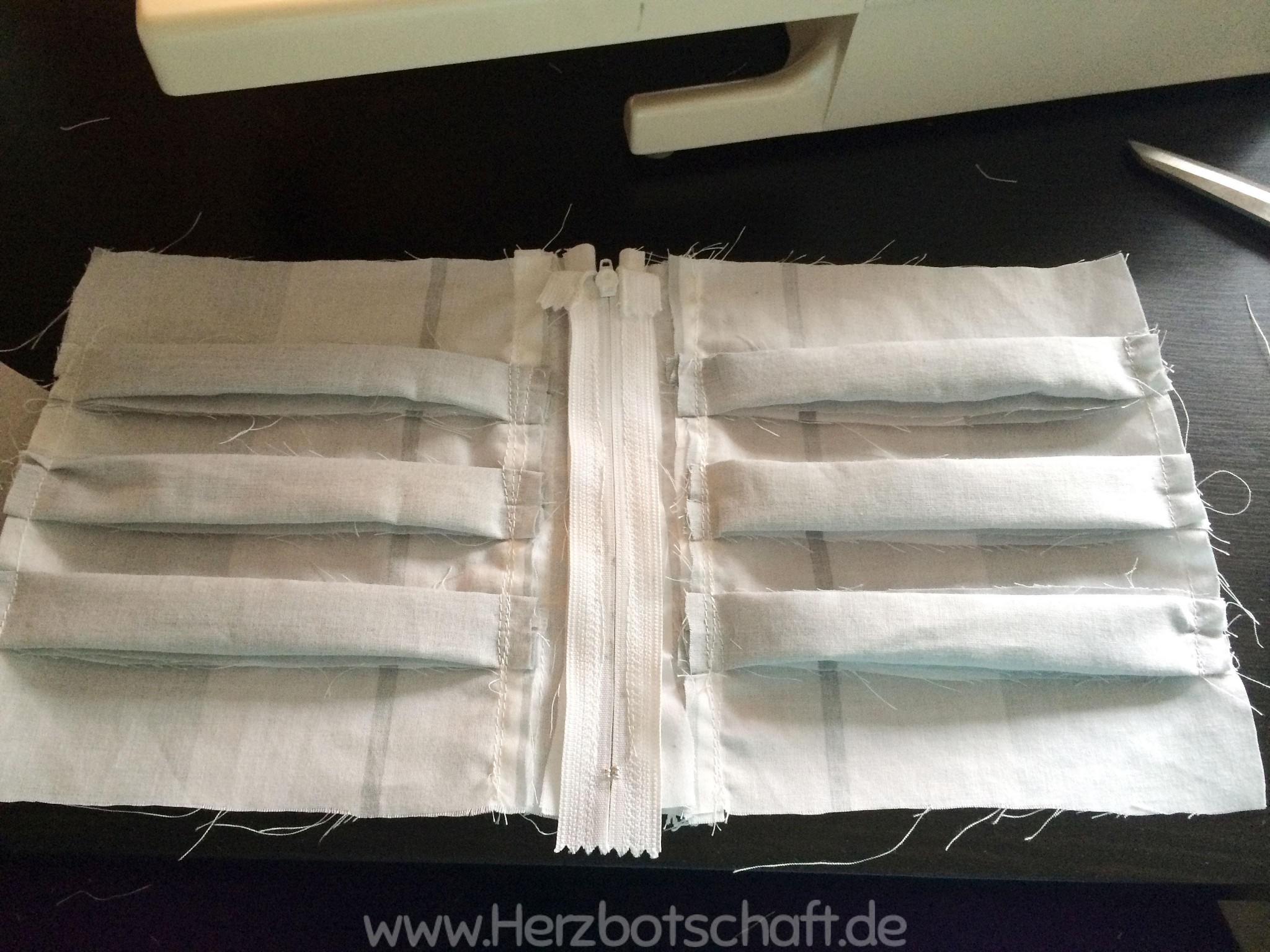 - Den Innenstoff ebenfalls an den Reissverschluss nähen.